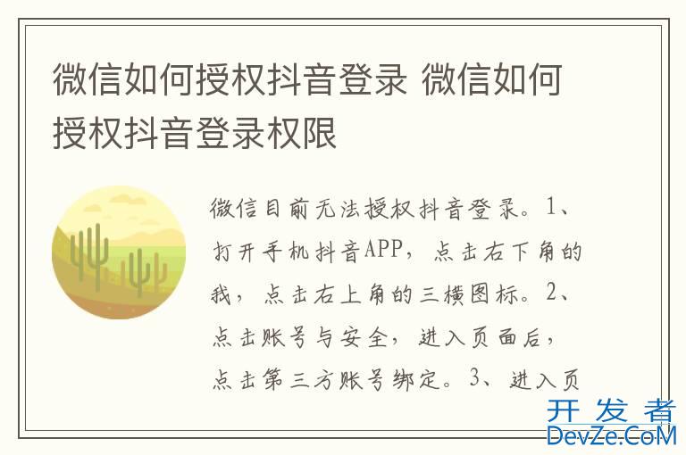 微信如何授权抖音登录 微信如何授权抖音登录权限